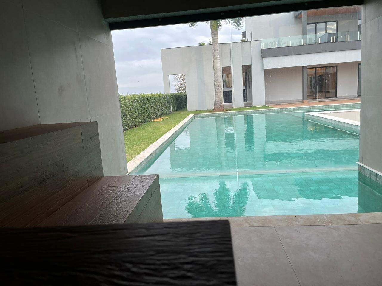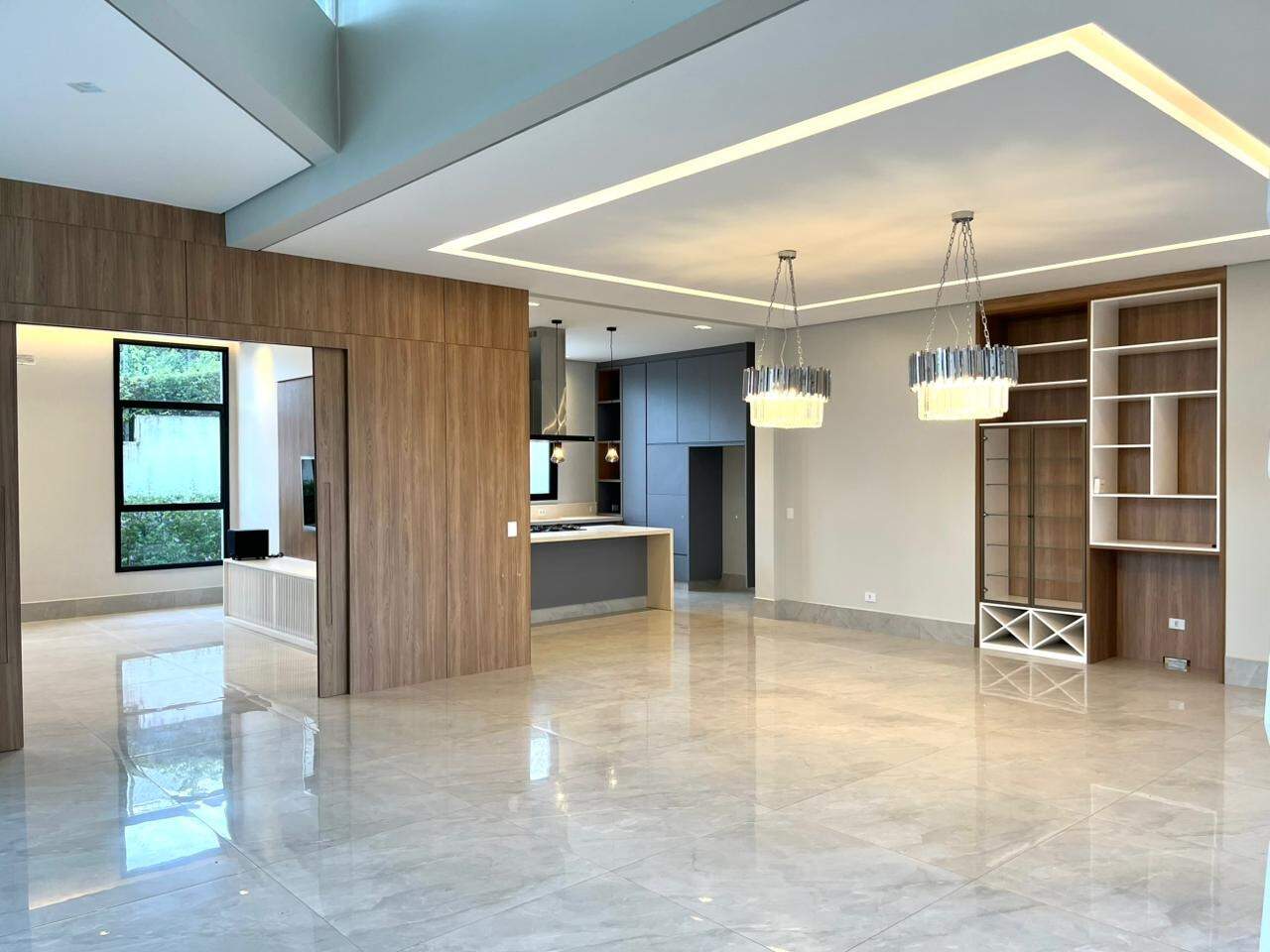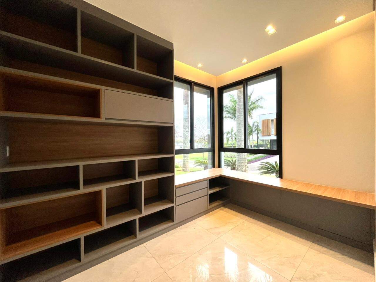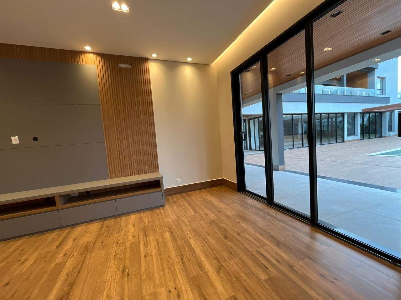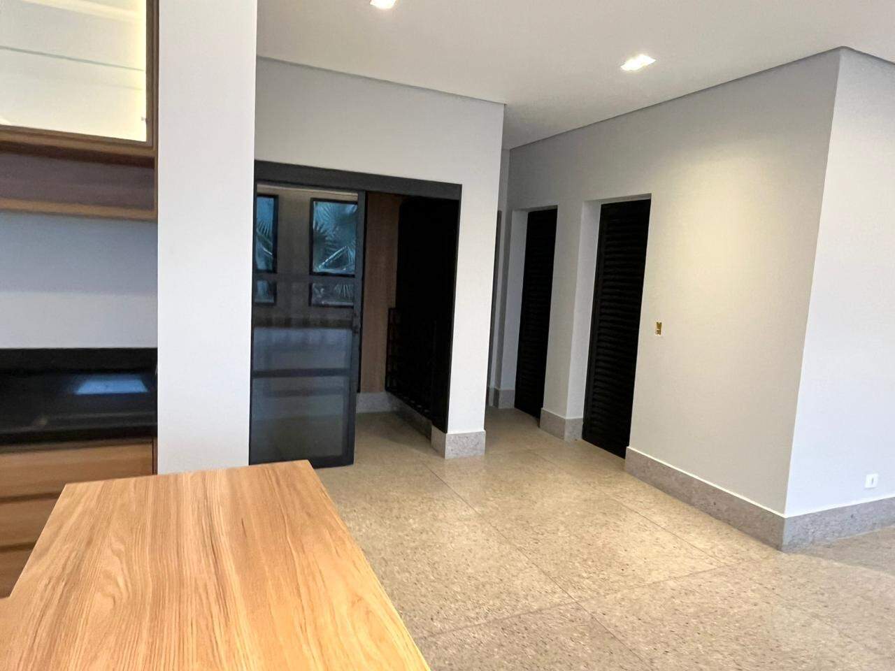 A cozinha — totalmente planejada — conversa com a área gourmet, que mais parece um salão de festas privado, com bar, adega, espaço TV e integração total com a piscina aquecida.