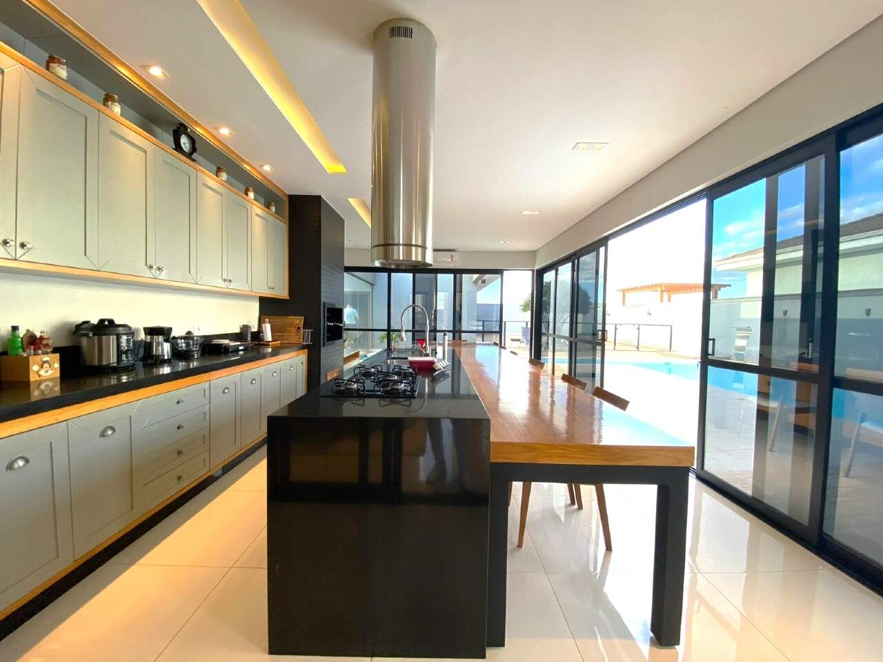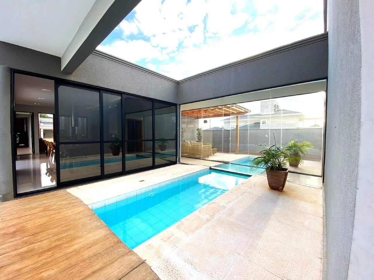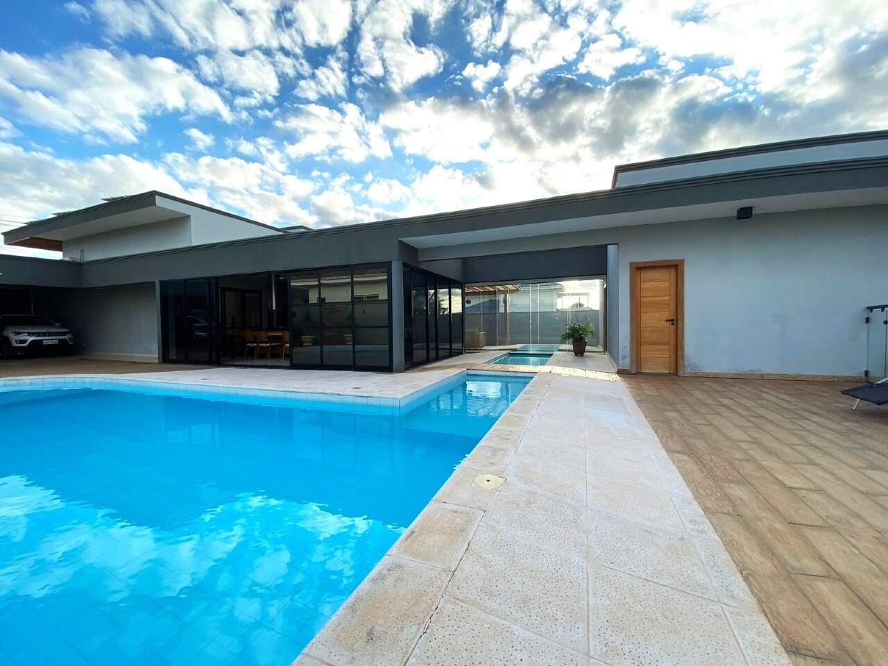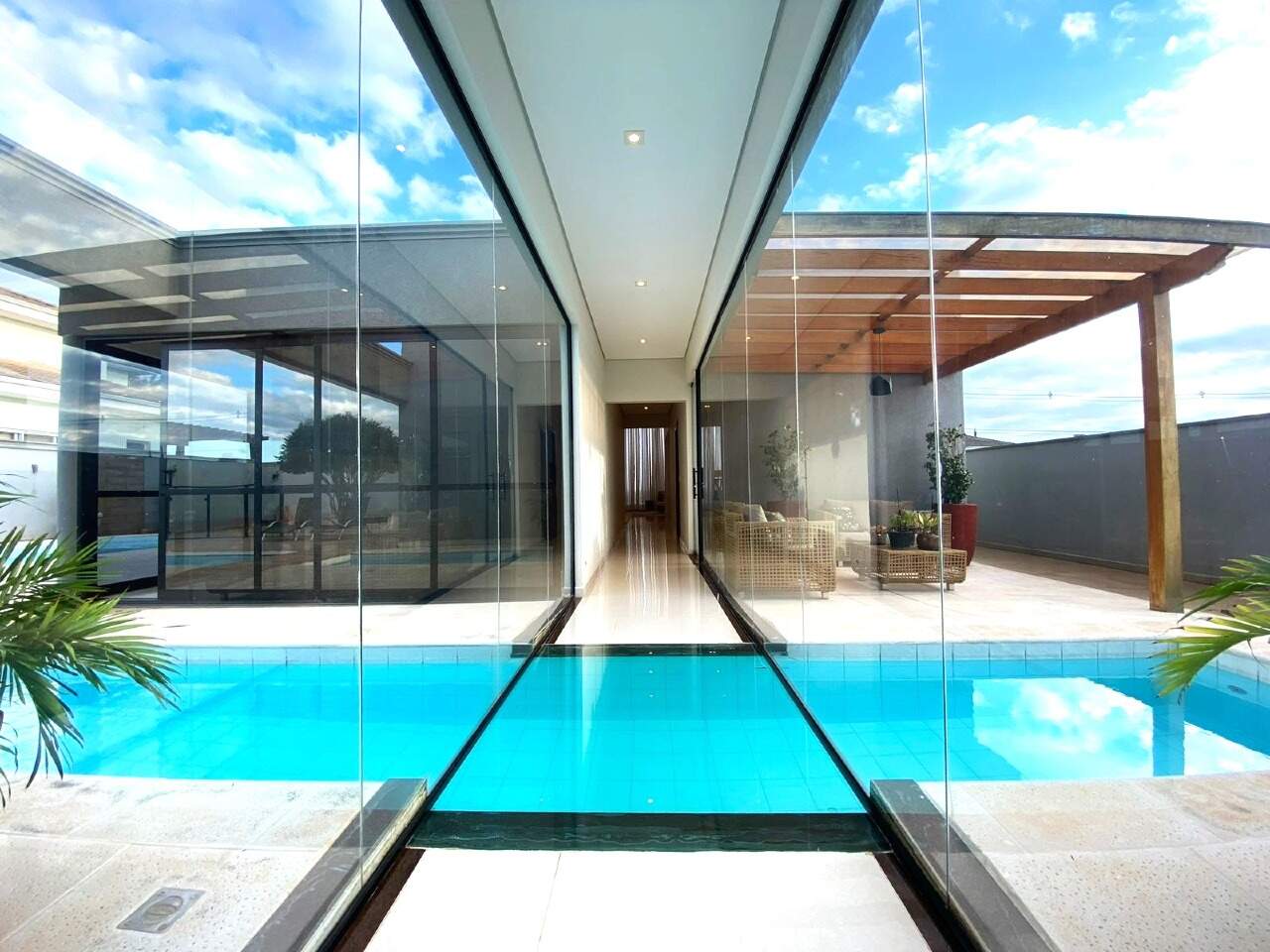 Essa exuberante casa foi planejda pensando no conforto e bem estar da família, possui uma ótima disposição dos cômodos,, possui com 4 suítes sendo um master com closet enorme e banheira de hidromassagem, sala de jantar e de estar, cozinha com móveis planejadas, lavanderia, dispensa, lavabo, uma piscina moderna e aquecida que passa por baixo da casa, 3 vaga de garagem coberta, um banheiro na área externa, um quintal grande, temos energia solar, energia fotovoltaica, todos os ambientes com ar condicionado, casa toda mobiliado com móveis de alto padrão