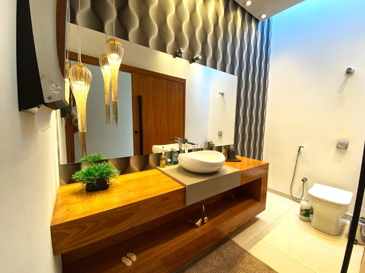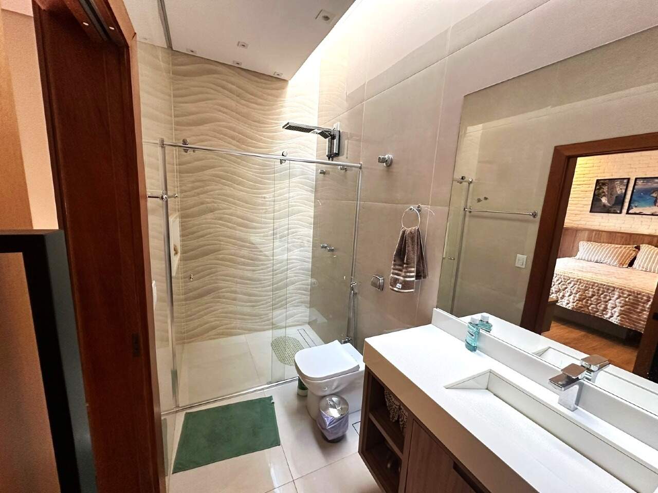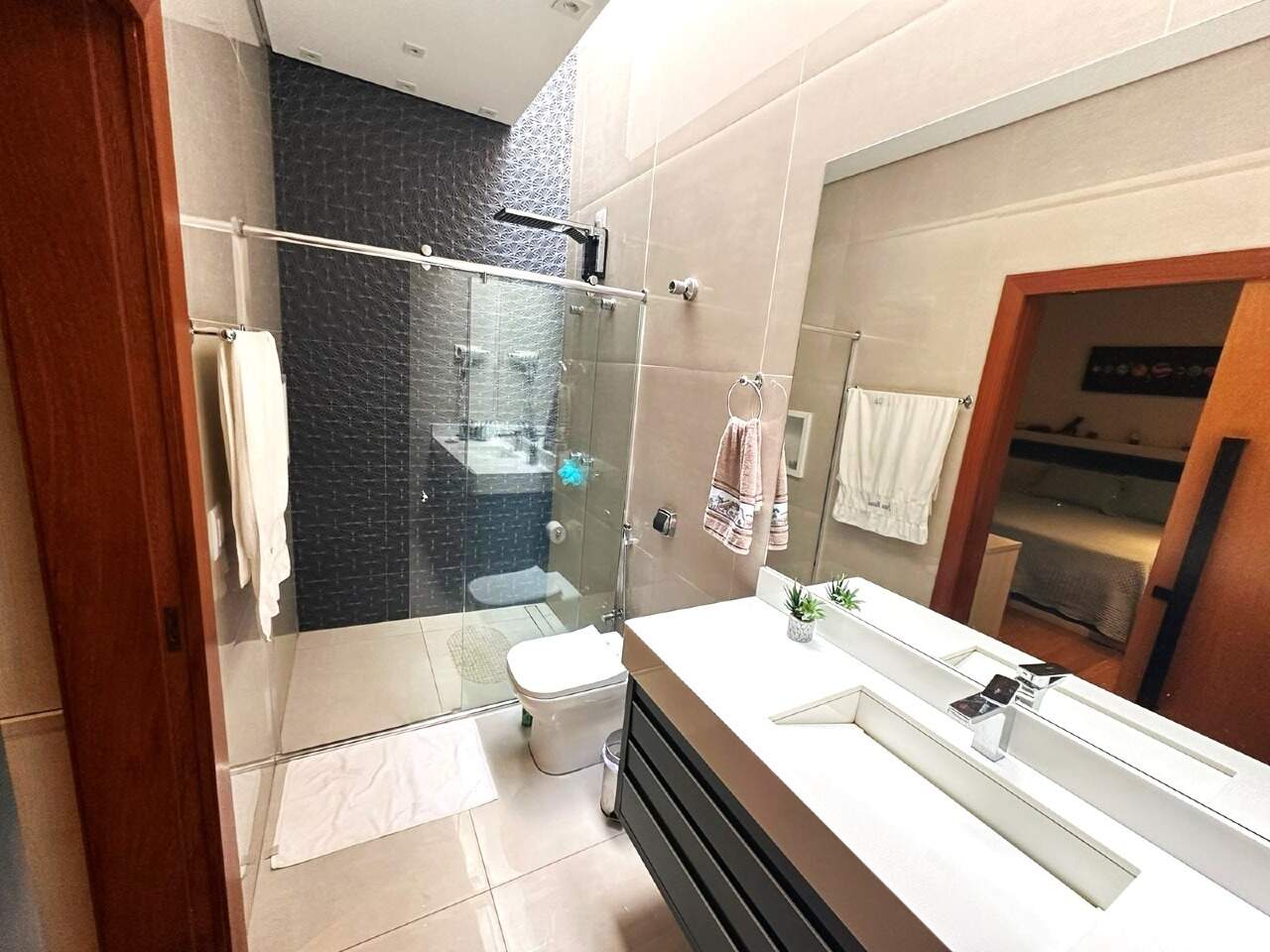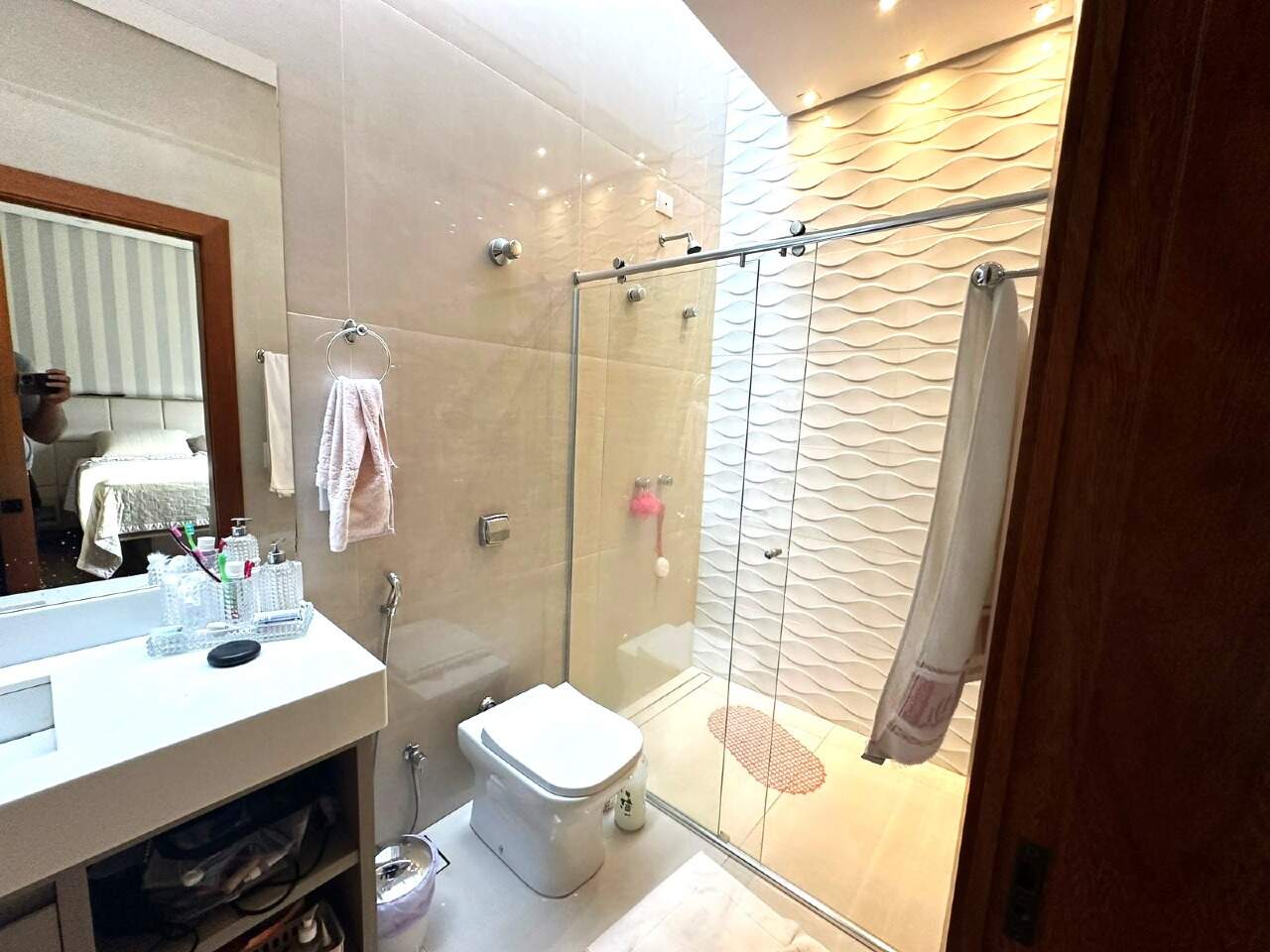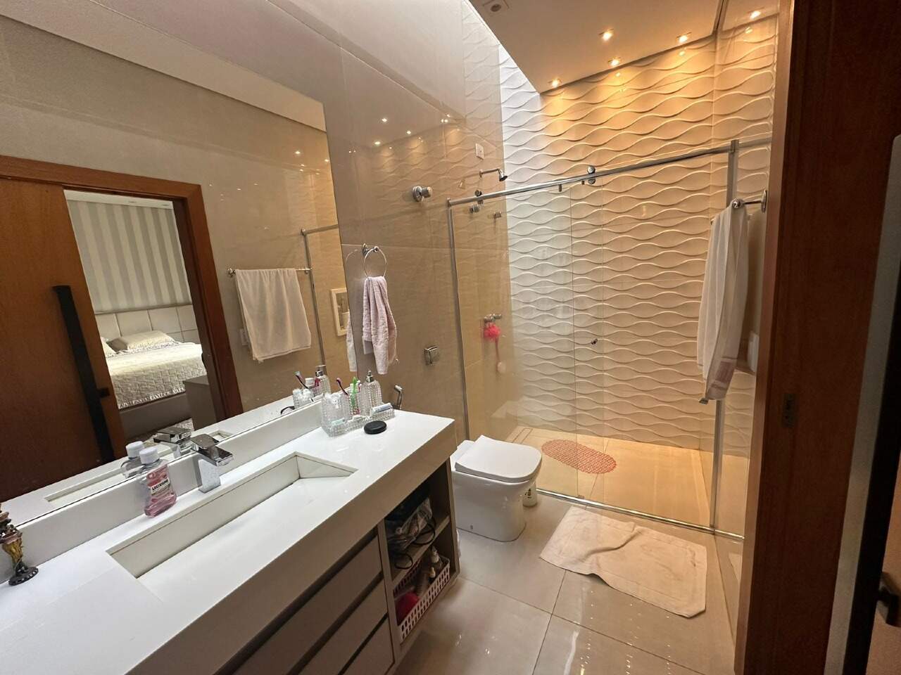 Essa exuberante casa foi planejda pensando no conforto e bem estar da família, possui uma ótima disposição dos cômodos,, possui com 4 suítes sendo um master com closet enorme e banheira de hidromassagem, sala de jantar e de estar, cozinha com móveis planejadas, lavanderia, dispensa, lavabo, uma piscina moderna e aquecida que passa por baixo da casa, 3 vaga de garagem coberta, um banheiro na área externa, um quintal grande, temos energia solar, energia fotovoltaica, todos os ambientes com ar condicionado, casa toda mobiliado com móveis de alto padrão