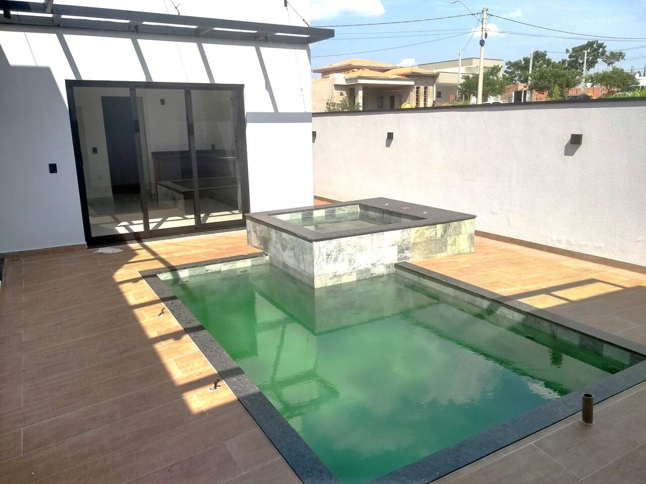 Casa toda em porcelanato, com acabamento de ótima qualidade,possui 3 suítes, uma ampla sala com pé direito duplo, área gourmet integrada com a cozinha, lavanderia, lavabo, piscina, garagem coberta para 2 carrosco, contém móveis planejados na cozinha e nos banheiros
