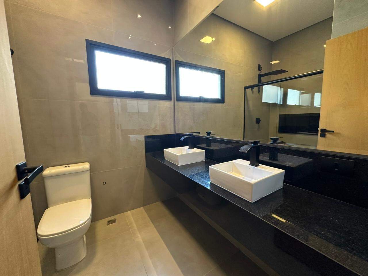 São 3 dormitórios com planejados e ar-condicionado inverter (quente/frio), suíte master com closet e banheiro com duas cubas. Escritório planejado, ideal para home office, Sala com pé-direito duplo, rack sob medida e ar-condicionado de 30.000 BTUs. Cozinha gourmet com ilha em granito, forno, cooktop, micro-ondas embutidos e churrasqueira a gás.