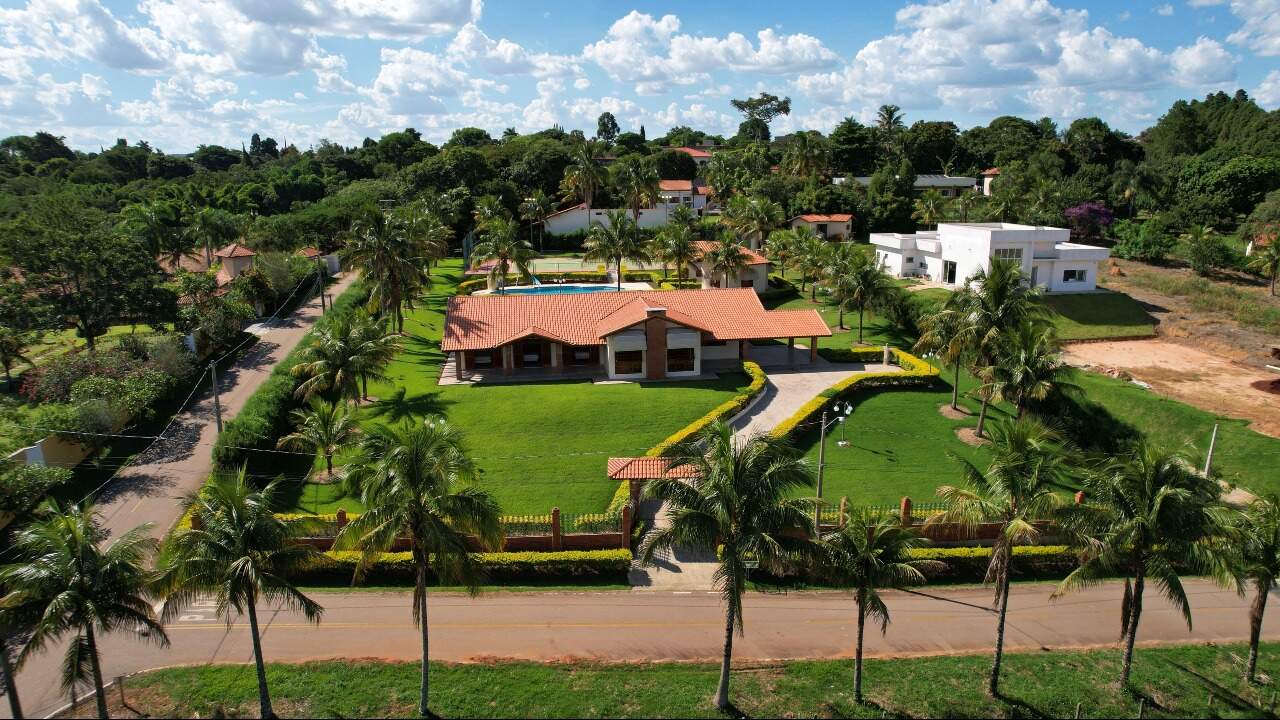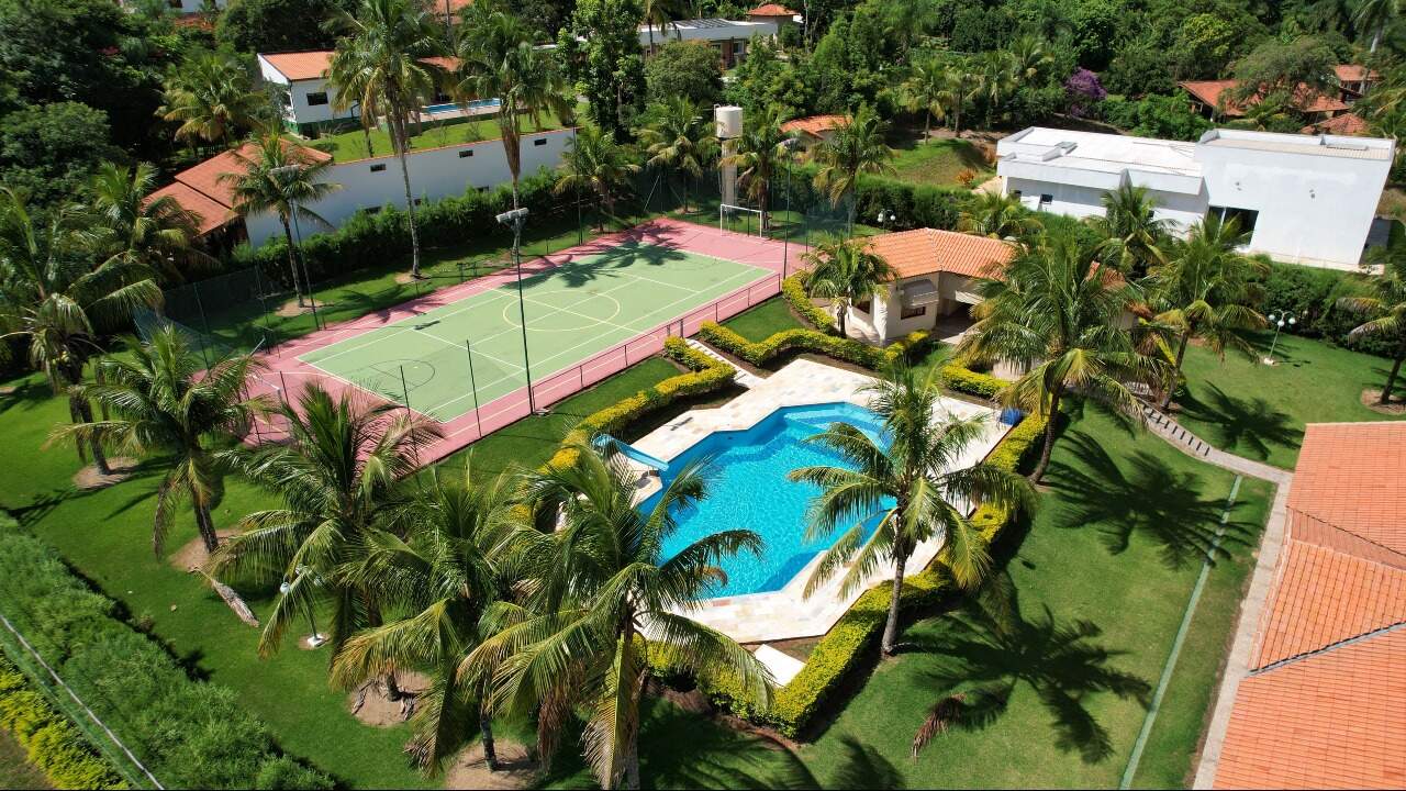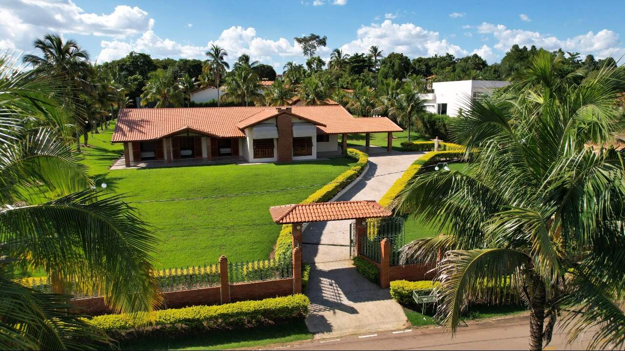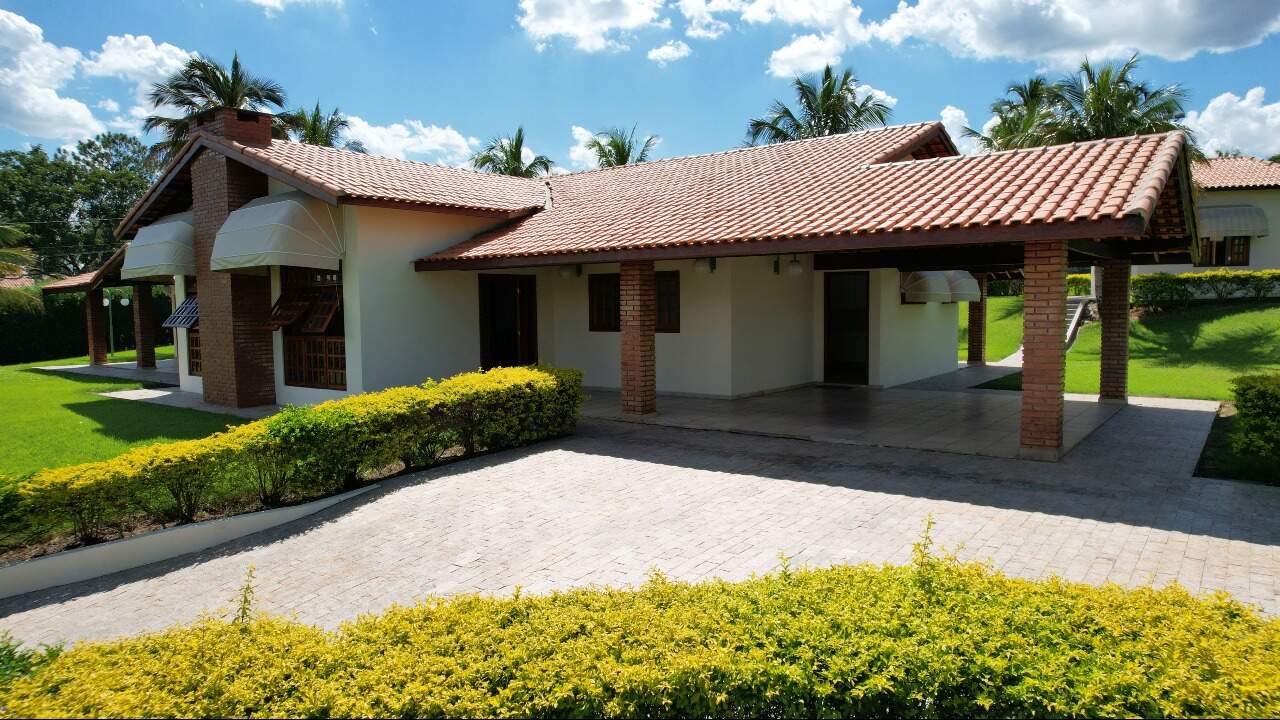 Essa maravilhosa chácara possui um terreno 4.278m2 e área construída de 550 m² divididos em casa principal com tres suítes , sendo a principal com closset e uma banheira de hidromassagem e outros dois quartos, sala de estar enorme, uma outra sala de jantar com lareira, sala de tv espasosa, ampla cozinha, lavanderia, duas vagas de garagem cobertas com possibilidade de ampliacão para mais seis, casa toda avaranda com uma vista maravilhosa para a natureza, o espaço gourmet contém churrasqueira com gril com espetos giratorio com ventiladores giratorios, conta ainda com mais dois quartos de hóspedes e um banheiro, possui piscina de 220 m³, quadra poliesportiva, agua encanada e poco artesiano com 220 metros de profundidade, vários pontos de iluminação em toda a chacara que a torna parecido com um cenário de novelas, o condomínio é fechado e possui seguranca 24 horas com rondas ostesivas,câmeras interna ligadas diretamente na portaria.