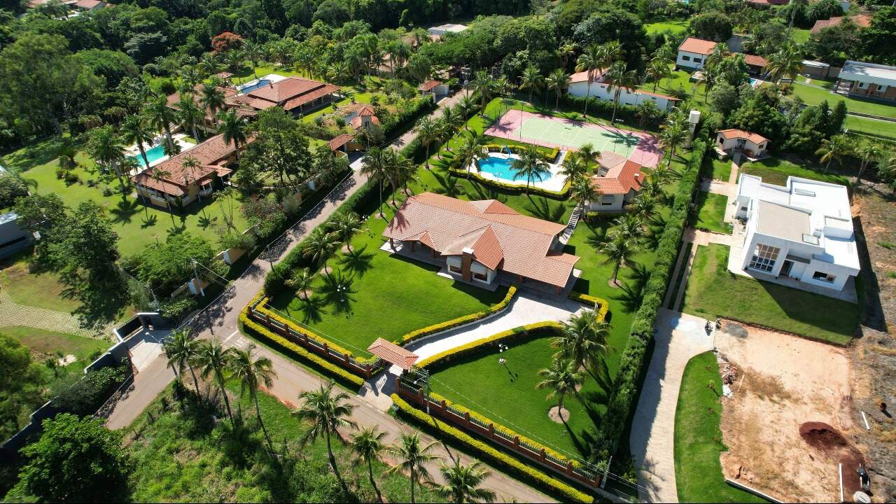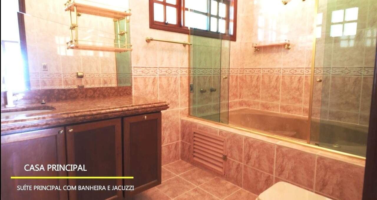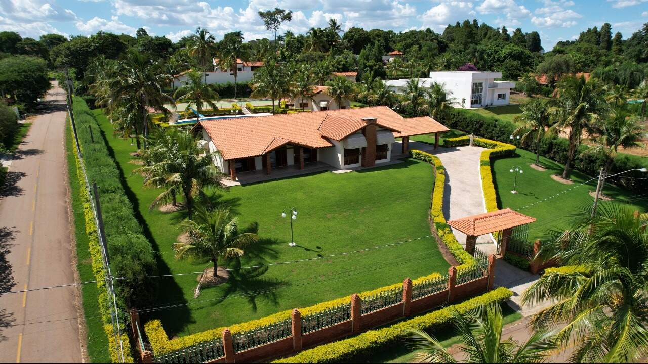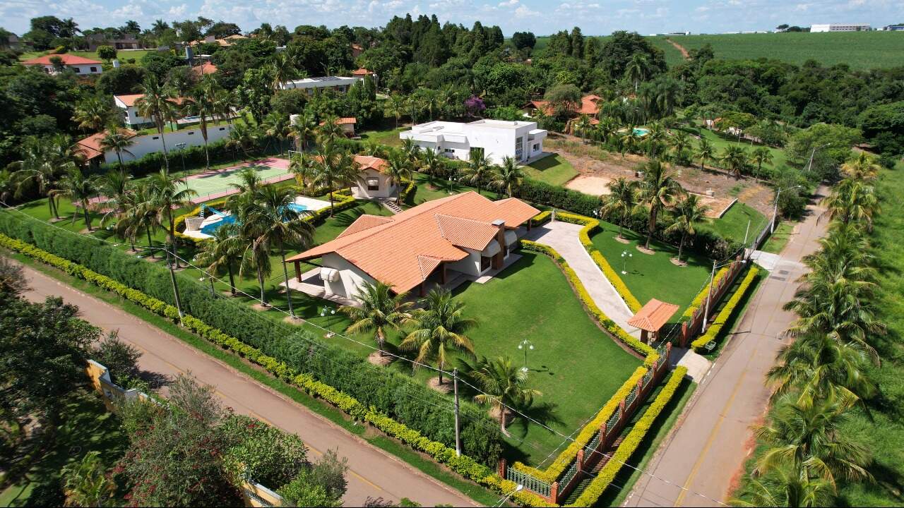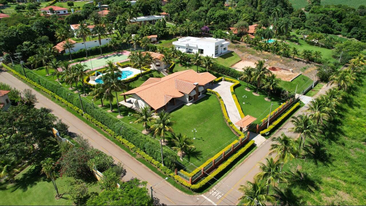 Essa maravilhosa chácara possui um terreno 4.278m2 e área construída de 550 m² divididos em casa principal com tres suítes , sendo a principal com closset e uma banheira de hidromassagem e outros dois quartos, sala de estar enorme, uma outra sala de jantar com lareira, sala de tv espasosa, ampla cozinha, lavanderia, duas vagas de garagem cobertas com possibilidade de ampliacão para mais seis, casa toda avaranda com uma vista maravilhosa para a natureza, o espaço gourmet contém churrasqueira com gril com espetos giratorio com ventiladores giratorios, conta ainda com mais dois quartos de hóspedes e um banheiro, possui piscina de 220 m³, quadra poliesportiva, agua encanada e poco artesiano com 220 metros de profundidade, vários pontos de iluminação em toda a chacara que a torna parecido com um cenário de novelas, o condomínio é fechado e possui seguranca 24 horas com rondas ostesivas,câmeras interna ligadas diretamente na portaria.