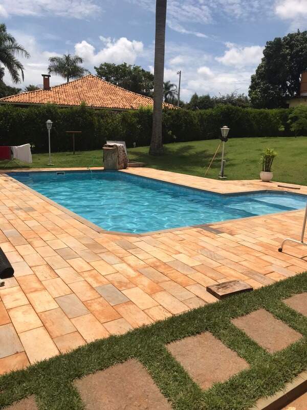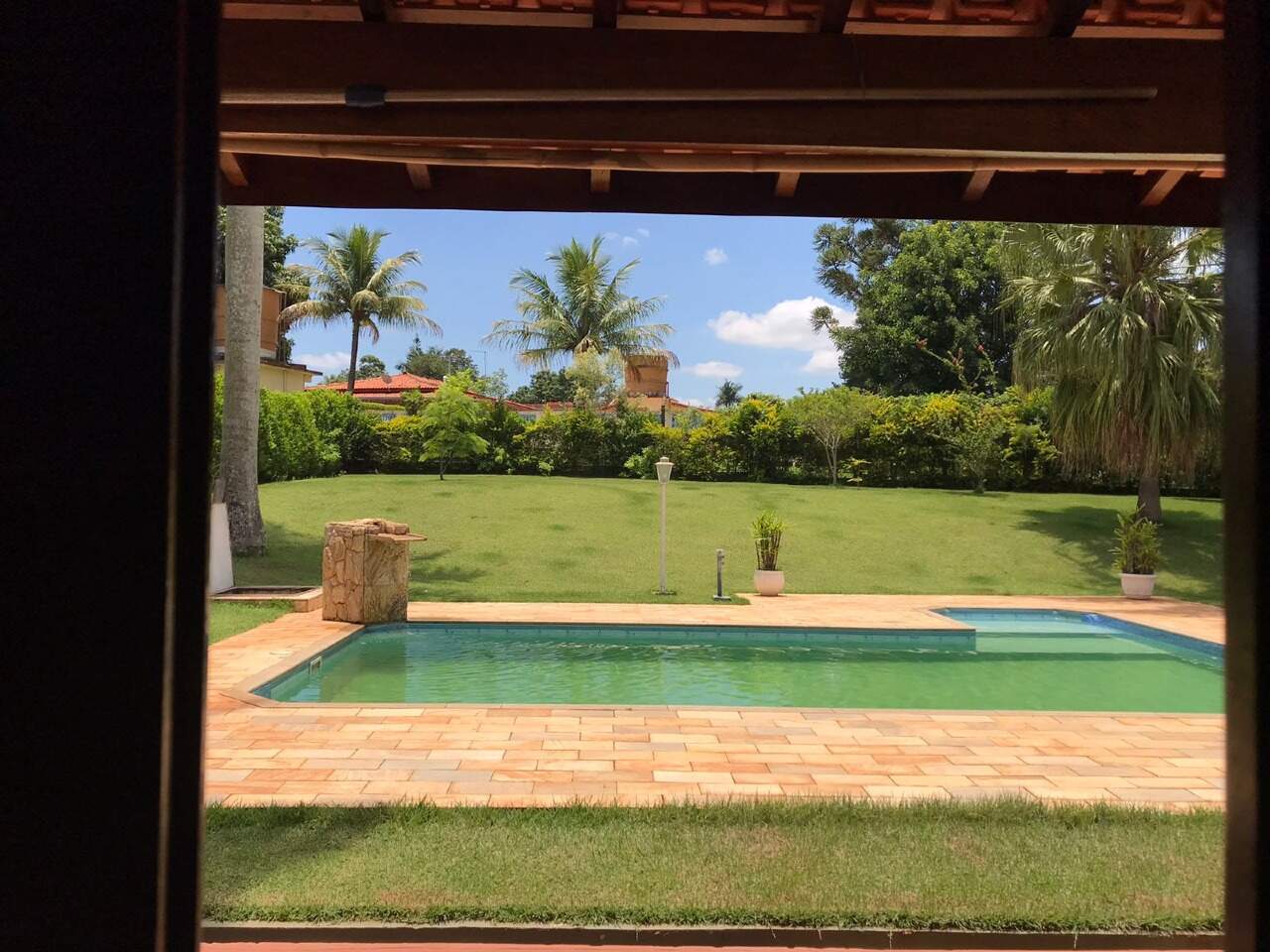 Piscina, campo de futebol e uma área gourmet completa com churrasqueira, forno a lenha e forno para assar.