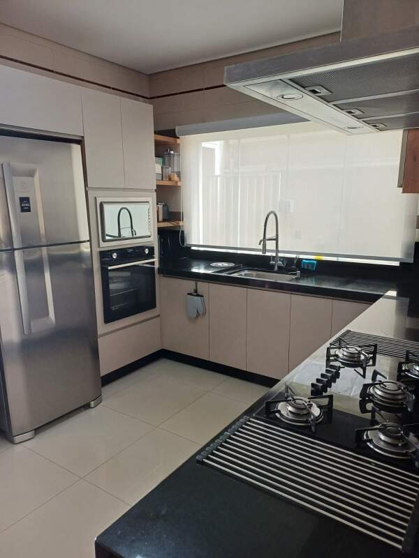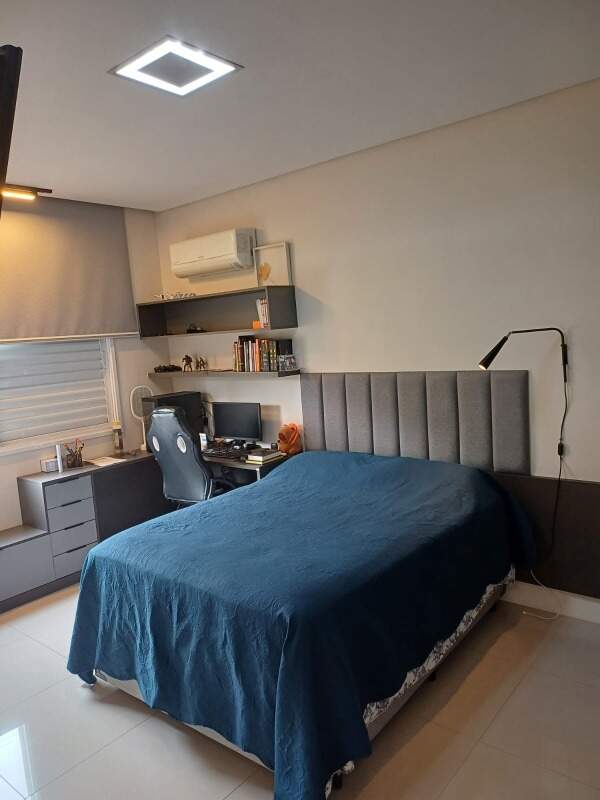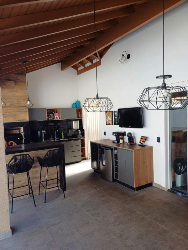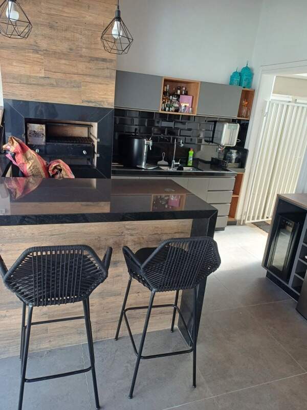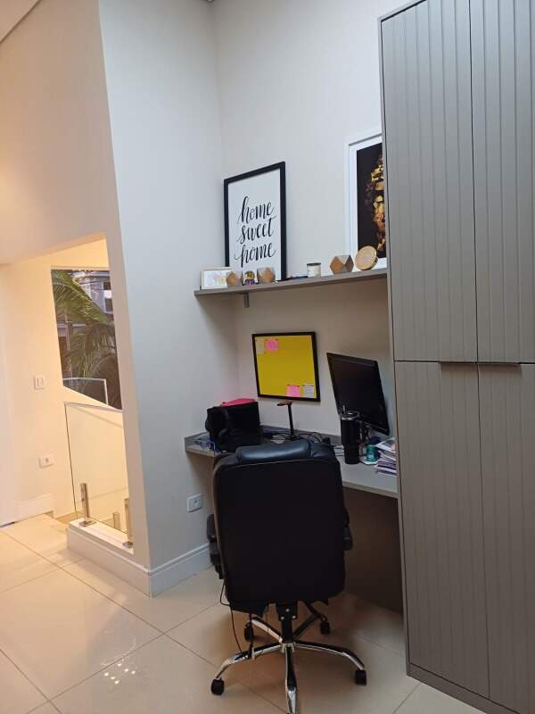 Projeto arquitetônico imponente que possui 3 dormitórios sendo 1 suíte master com closset no piso superior e outra suíte no piso inferior que conta com mezanino para home office, ampla sala de estar com pé diretio duplo, sala de jantar, cozinha com móveis planejados, área gourmet com piscina com aquecedor, garagem coberta para 2 carros e outras 2 vagas descobertas.