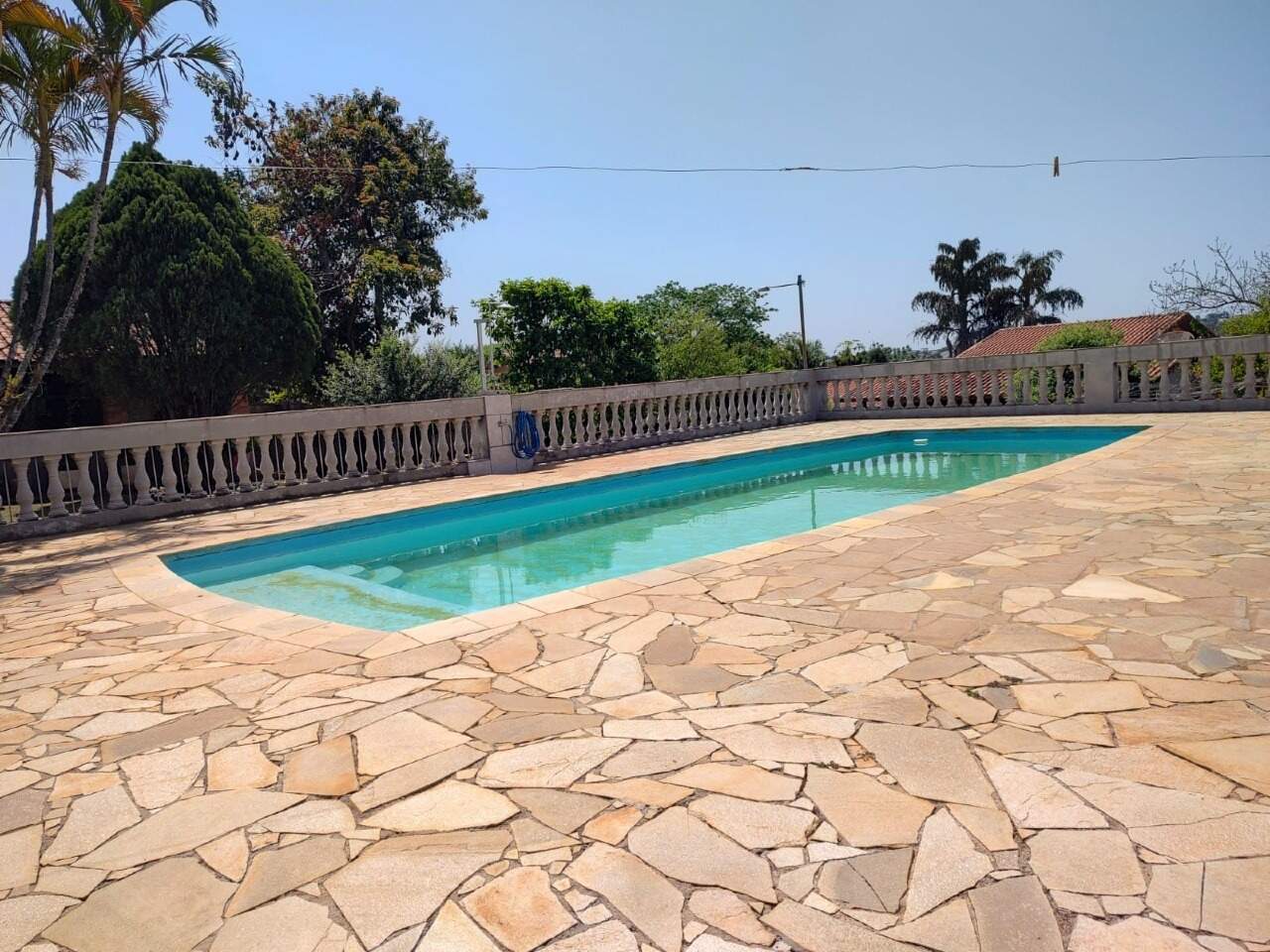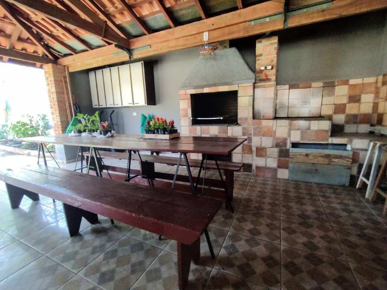 Estou localizada no bairro Jardim Flamboyant, em meu terreno possui uma casa de 230m² de área construída e um enorme terreno de 1800m²!