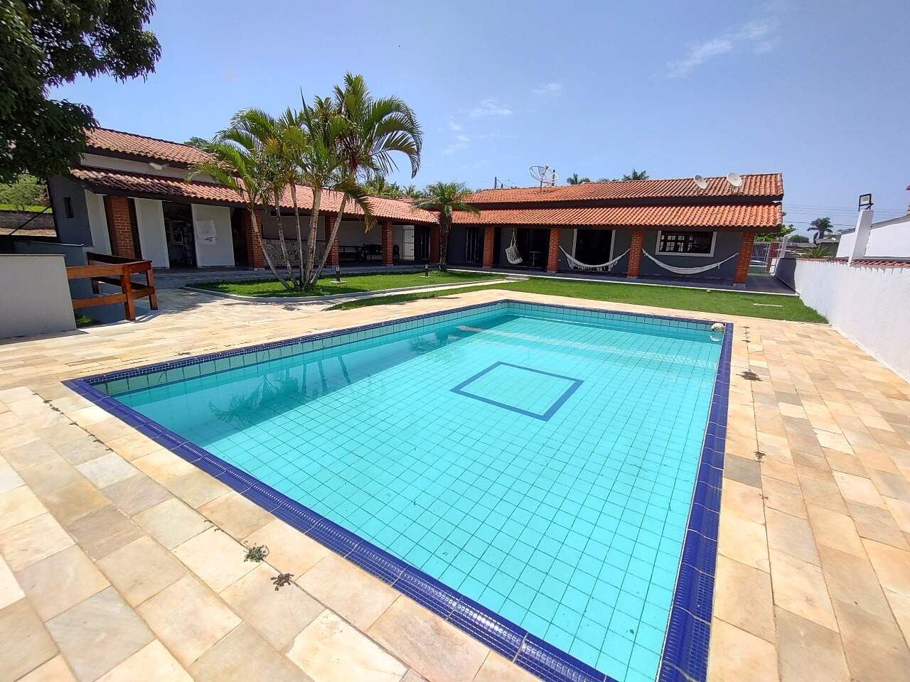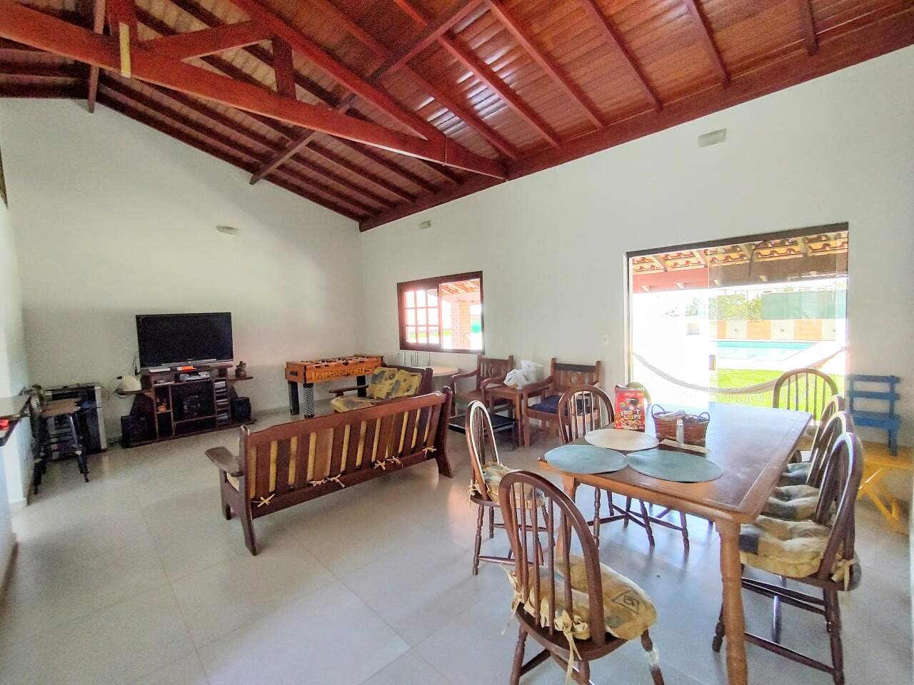 A casa toda mobiliada (inclusive camas, mesa, sofá...) possui 3 dormitórios, sendo 1 suíte +1 banheiro social interno e outro externo. Para o lazer de toda família e amigos ainda tem uma piscina enorma, mini campo de futebol, playground e churrasqueira.